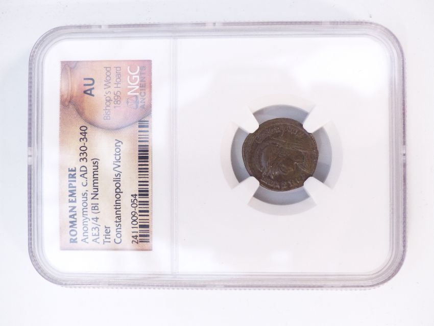 London Mint Office "Bishop's Wood Hoard" Roman bronze coin 330-340AD, cased with certificate.