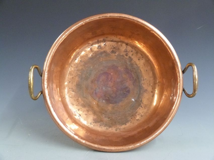 19thC twin handled copper jam pan, width 48cm