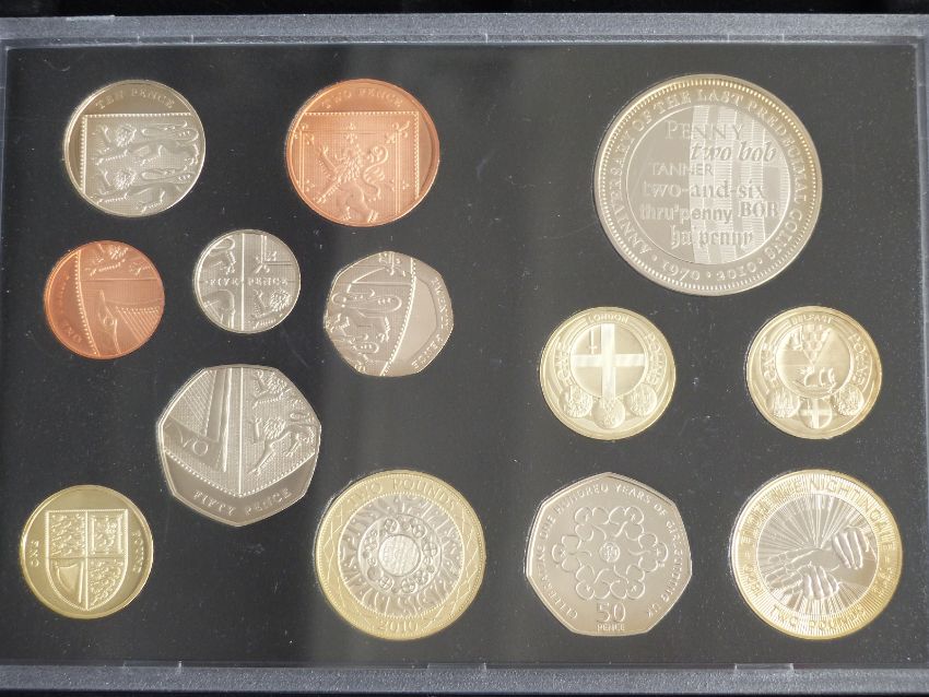 Five silver 1oz Britannias, an Australian 1oz silver Kookaburra, two silver twenty pound coins, Brunel 2006 coin set, a 2010 Royal Mint proof coin set etc. some with certificates