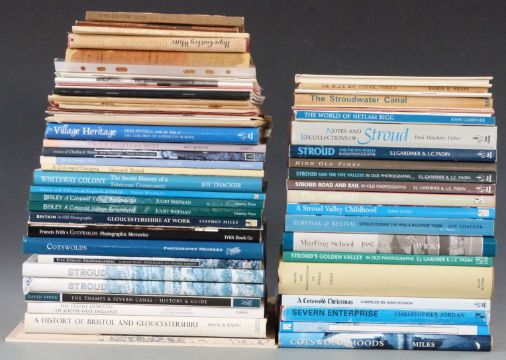 [Local History] Notes & Recollections of Stroud by Paul Fisher reprint of 1891 edition, A Cotswold Year 1937, Gloucestershire Stories by Hope White (c1949) and books on Bisley, The Severn, The Whiteway Colony, Chalford, Rodborough, Eastcombe, Marling School, Stroudwater Canal, Stroud Show programme 1951 etc (approx 50)