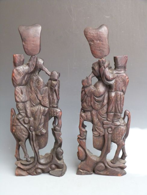 Pair of Chinese wire inlaid carved hardwood figures of warriors, H53cm