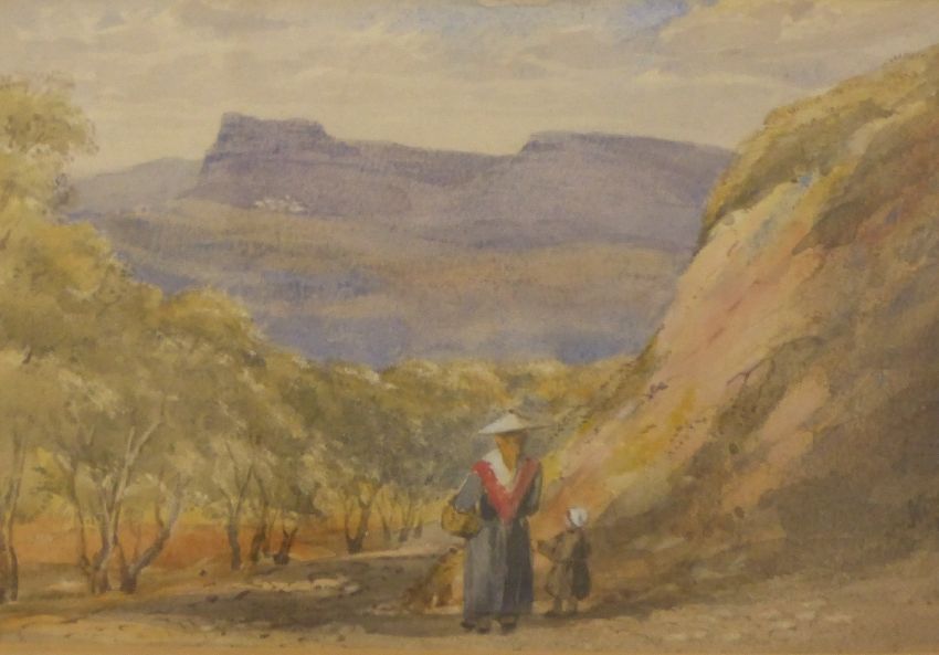 Attributed to William Leighton Leitch (1804-1883) watercolour 'View near Nice', titled and dated 16 lower right, 15 x 23cm, with details to mount and verso