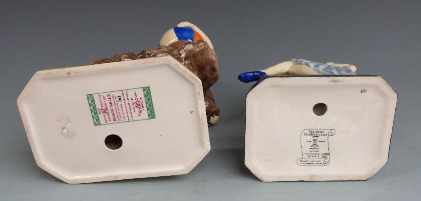 Two Kevin Francis limited edition figurines Beach Belle 268/750 and Tea with Clarice Cliff 1,366/2000 H25cm