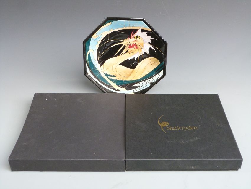 Black Ryden signed Emma Bossons limited edition 9/250 octagonal charger decorated in the Sea Serpent pattern, boxed, diameter 26cm