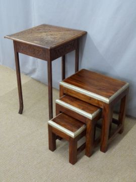 An Eastern metal bound hardwood nest of tables, height 47cm and a side table
