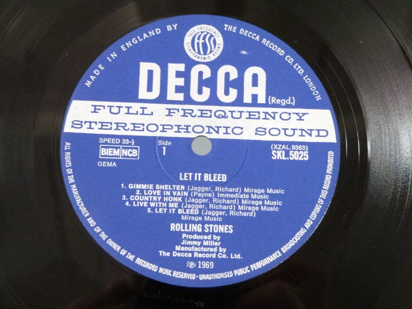 The Rolling Stones - Let It Bleed (SK5025) with front cover sticker and blue inner but no poster, record and cover appear Ex, less stain bottom rear
