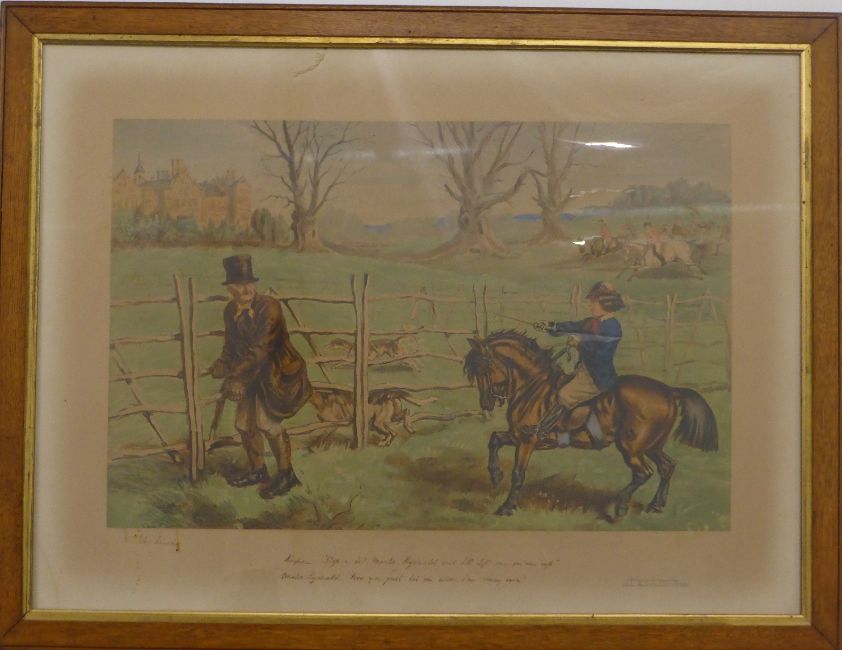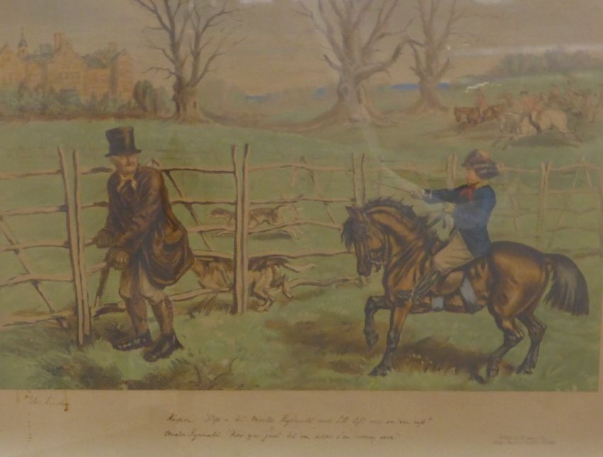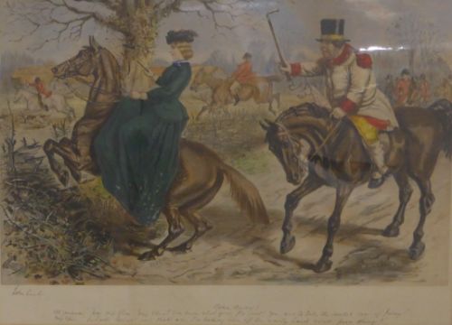 Four 19thC John Leach hunting/horse riding prints, each approximately 47 x 64cm