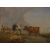 19thC oil on board of cattle and sheep with windmill beyond, 15 x 20cm, with panel supplier's label verso