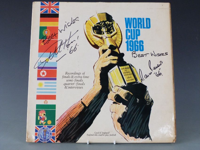 World Cup 1966 vinyl record signed to the sleeve by Geoff Hurst and Martin Peters