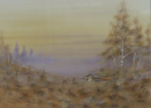 Stephen Francis Allen watercolour game bird in landscape, signed and dated 89 lower left, 33 x 46cm