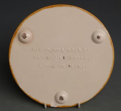 Minton Hollins and Co relief moulded Queen Victoira teapot stand 'Commemorating Her Record Reign 1837-1897', diameter 18.5cm