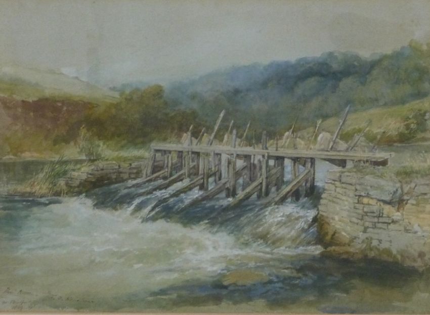 Frederick Henry Henshaw 'The Avon Nr Stratford' salmon leap, signed, dated 1869 and titled lower left, 26 x 36cm