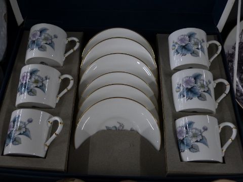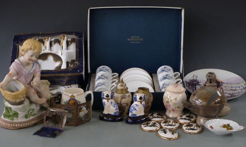 Boxed Royal Worcester coffee set, bisque figure, studio pottery etc