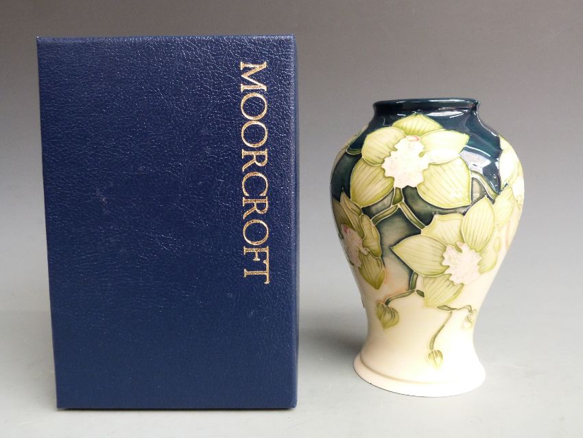 Moorcroft signed Anji Davenport limited edition 27/30 baluster vase dated 2001, boxed, H15.5cm