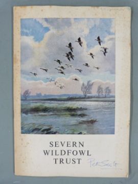 [Signed] The Severn Wildfowl Trust Guide (c1948) with Introduction by Peter Scott photographic reproductions and membership/subscription forms in original wrappers with colour cover signed by Peter Scott on lower front with An Official Illustrated Guide to The Stroud Valley (c1910) and another later guide (3)