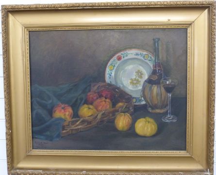Tomanek Marie oil on canvas still life of fruit, signed and Wien 1918 lower left, 53 x 68cm