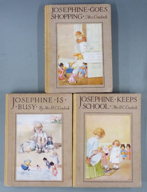 The Adventures of Two Dutch Dolls by Florence K. Upton, published Longmans Green in cloth backed illustrated boards, Three "Josephine" titles by Mrs. Craddock pictured by Honor C. Appleton by Blackie in colour boards (c1920s) with Peggy & Joan in same format, Three Blind Mice and Humpty Dumpty, Fireside Stories Ernest Nister (c1893) with chromos, Margaret Tarrant a copy of Aesops Fables pictured by Henry Ford (c1893) illustrated cloth (11)