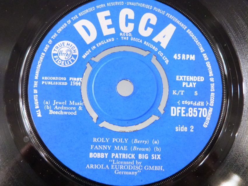 Bobby Patrick Big Six - Teenbeat 3 (DFE 8570), appears Ex, with discoloured rear sleeve