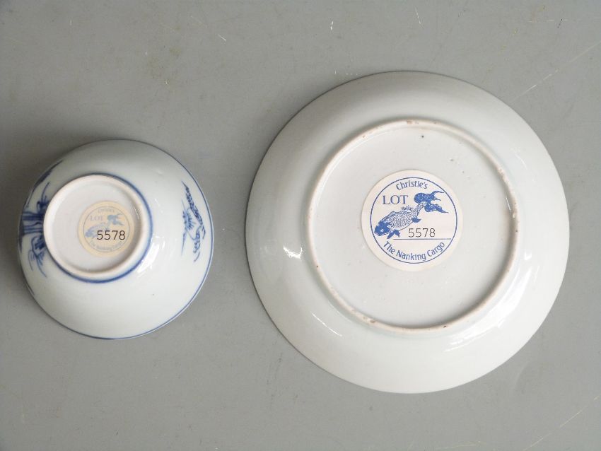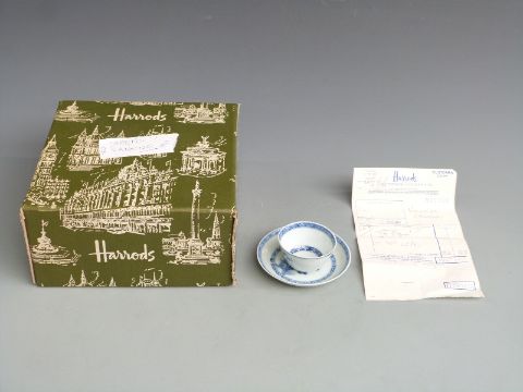 An 18thC Chinese Nanking cargo tea bowl and saucer with 1986 Harrods receipt for £185, in original box