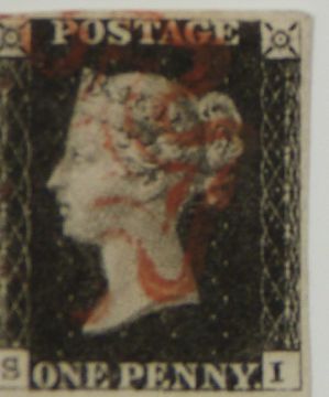 Great Britain 1d black S.I. 4 margins, light red Maltese cross cancellation, plate 5