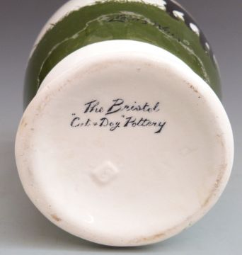 Bristol / Pountney pottery vase decorated with a cat and dog scene entitled 'How Dare You', with Louis Wain signature, H18cm