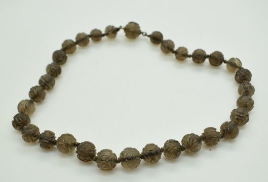 19thC Chinese carved smokey quartz necklace