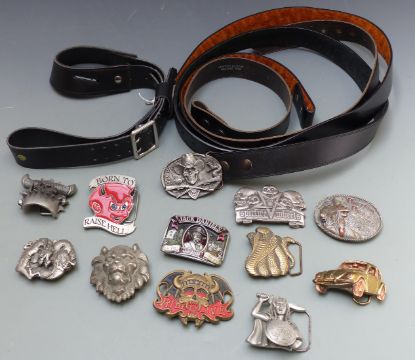 Quantity of novelty belt buckles to include Bergamot brass works VW Beetle, Jack Daniels etc