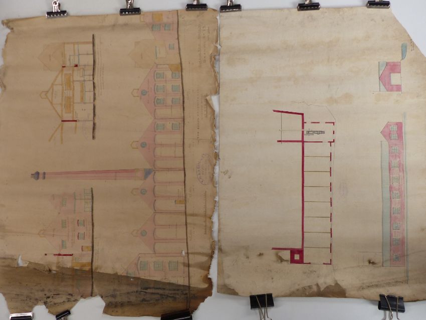 Two architect's drawings of mills, one titled Boron Products Co. Ltd. Inchbrook, Stroud and stamped T.H. & J. Daniels Lightpill Ironworks, Stroud, dated 1908, 54 x 70cm the other dated 1896 and also marked Daniels