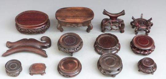 Thirteen 19th/20thC Chinese hardwood stands, longest 14 x 8cm