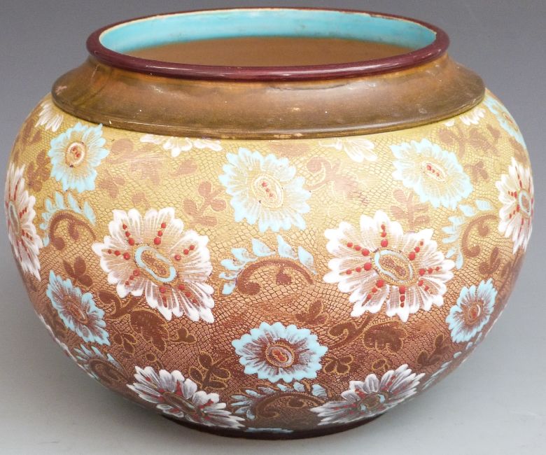 Royal Doulton Slaters patent jardiniere decorated with flowers, H 19cm, diameter 28cm