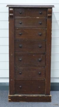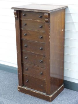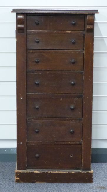 Late 19th/20thC stained pine Wellington chest of seven graduated drawers, W51 x D41 x H108cm