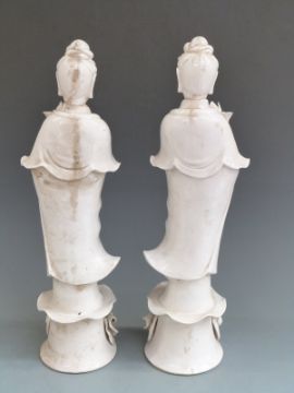 A pair of 19th/20thC Chinese blanc de chine figures of Guanyin, figures 45cm
