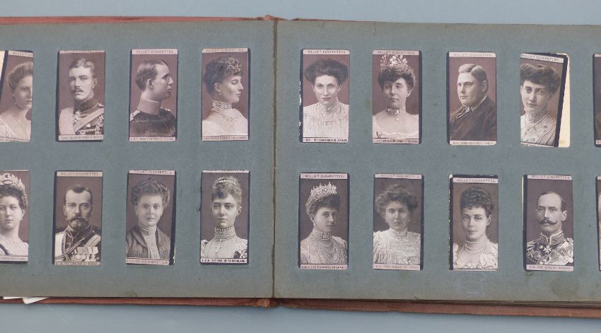 John Player vintage Cigarette Pictures album, includes European royalty and flowers, another album with sets including Ogden's, Wills's, Player's, Lambert & Butler motor cars and Sarony, and some loose including British Empire, flag and J Wix Henry cards
