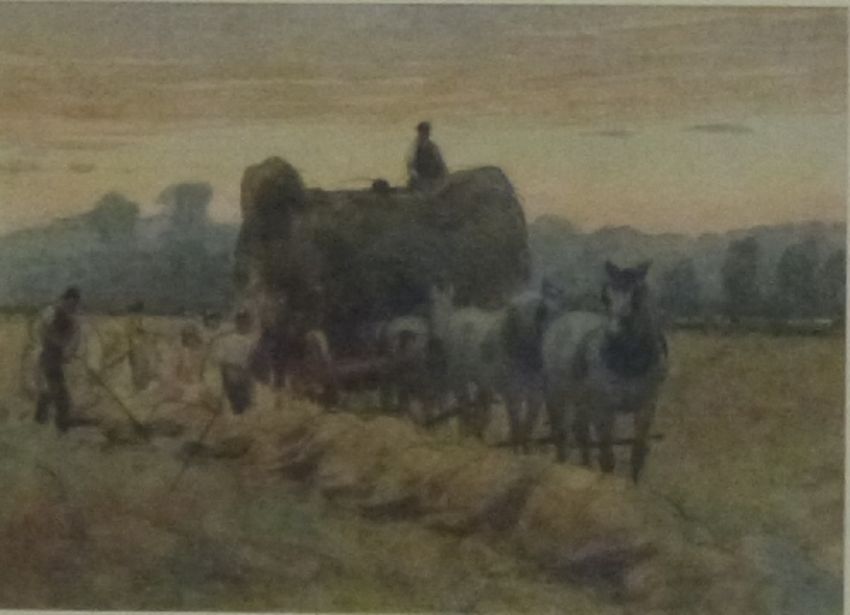 Frederick John Skill (1824 - 1881) watercolour haywain being loaded, signed lower left, 12 x 16.5cm