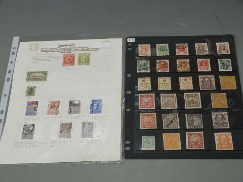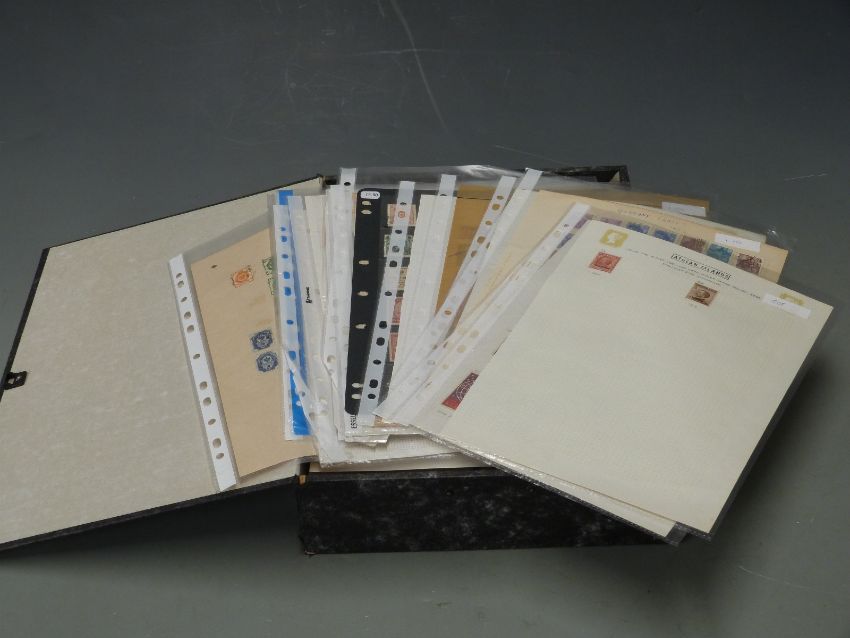 A box file of European stamps including early issues on loose album pages
