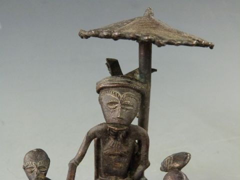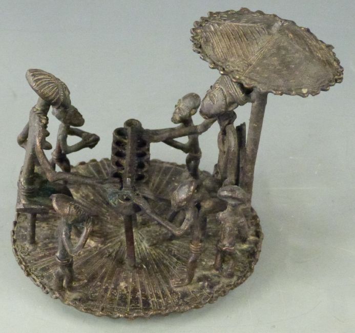 African Ashanti 19thC bronze figural group playing a game, H12cm