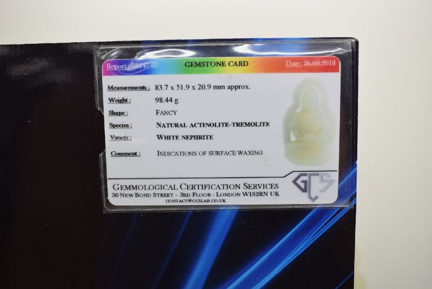 Chinese/ Tibetan nephrite carving of Buddha with certificate