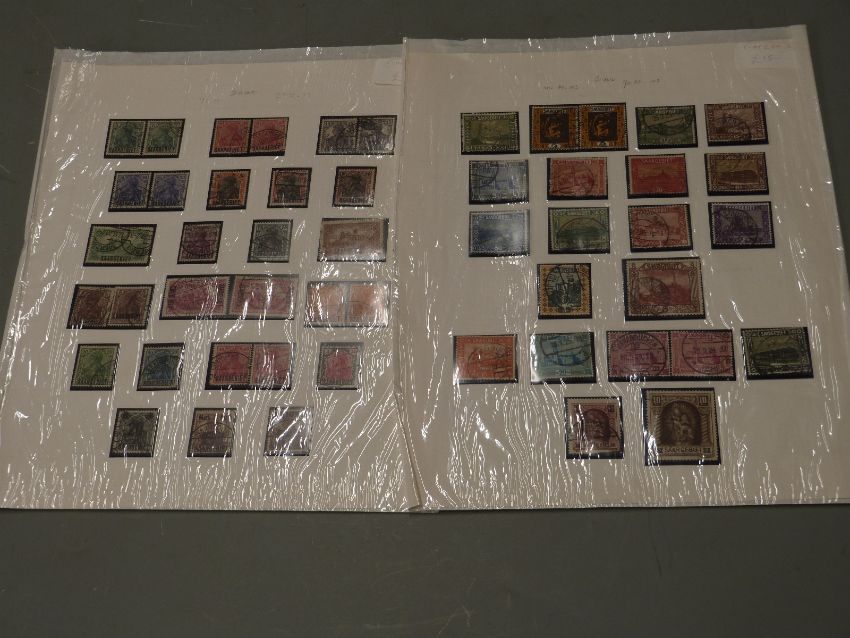 A selection of early European stamps on loose album sheets, including Danzig, Latvia, Saar and Germany