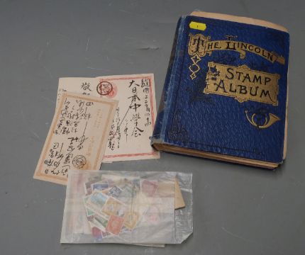 Lincoln stamp album and contents together with loose stamps in packets with early issues including GB, Australian states