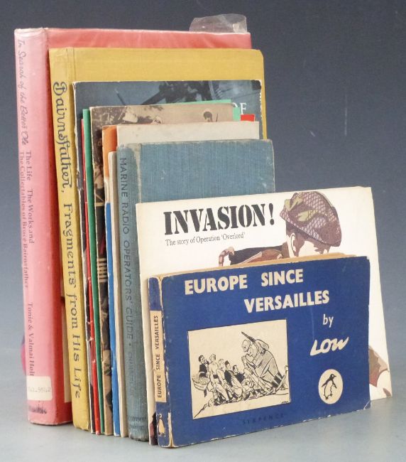 Bairnsfather A Few Fragments From His Life Collected by a Friend published Hodder & Stoughton (1916) illustrated, The Life The Works and Collectables of Bruce Bairnsfather, Marine Radio Operator’s Guide, Australian Army at War 1944, Battle of Normandy Michelin Tyre map, Europe Since Versailles by Low, Story of Operation Overlord and other pamphlets