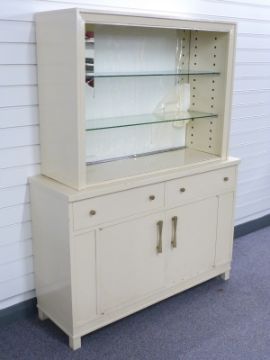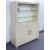 Industrial / shopfitting / haberdashery painted metal bookcase / cabinet with adjustable shelving and two straight drawers, W123 x D41 x H162cm