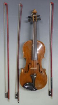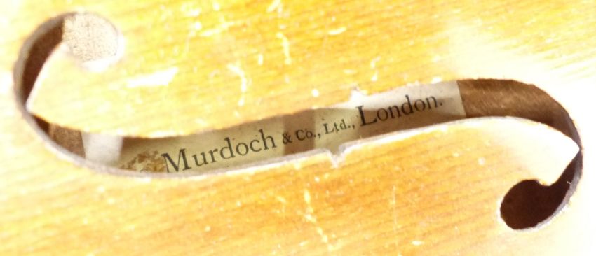 Murdoch & Co Ltd London 'The Maidstone Violin', with 35.5cm two piece back, in coffin style carry case with accessories including an adjustable pitchpipe etc and three bows - LEFT MESSAGE CHARITY ON WEDS 17TH JULY