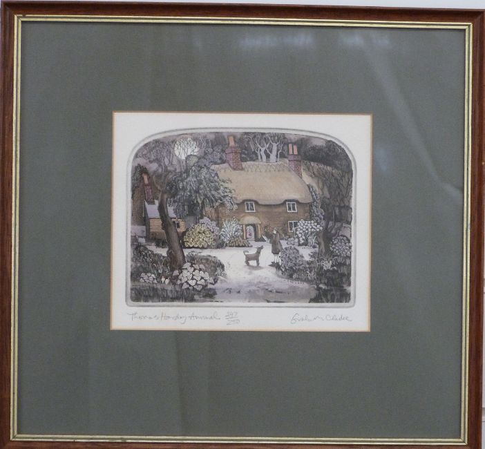 Two Graham Clarke signed limited edition (247/250) etchings one 'Thomas Hardy Annual' the other 'Squeeze Box', each 16 x 19cm