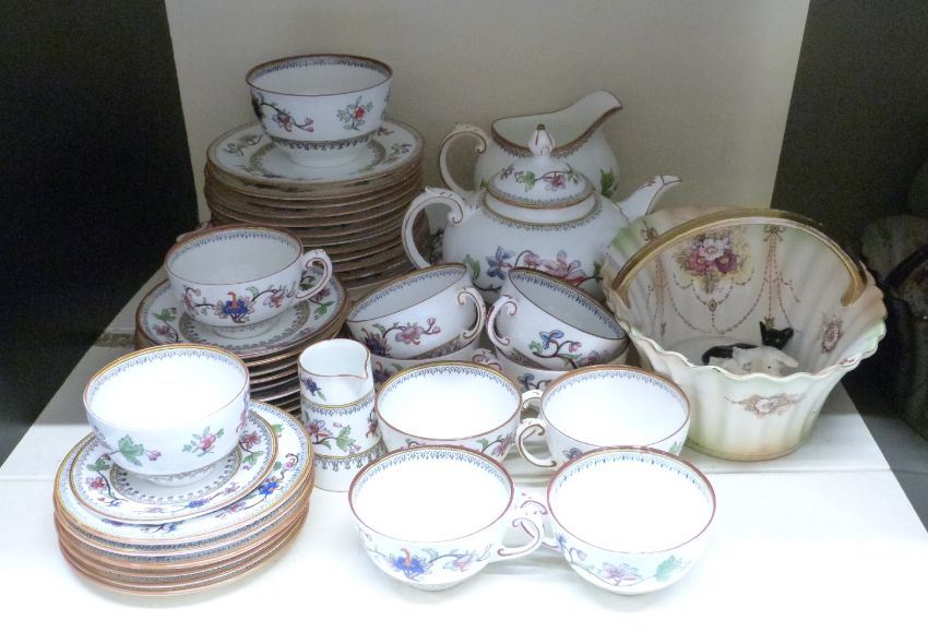 Crown Devon Banff basket together with a large Coalport teaset hand painted in Flower Pot pattern (No. 6071B) including teapot, jugs, sugar bowls, cups and saucers etc
