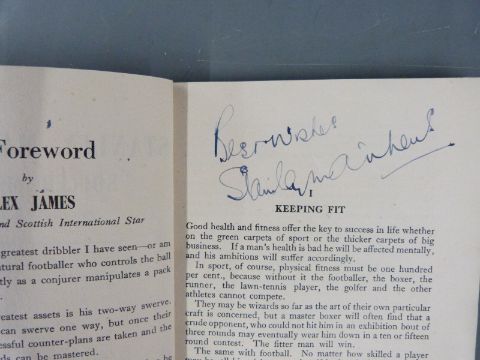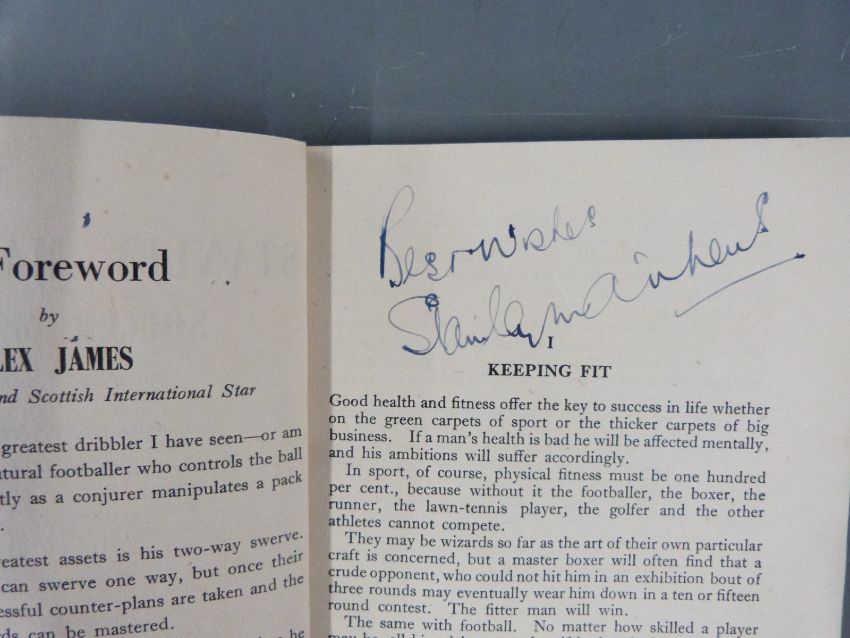 Stanley Matthews signed Soccer Manual together with a signed photo, 14 x 9cm