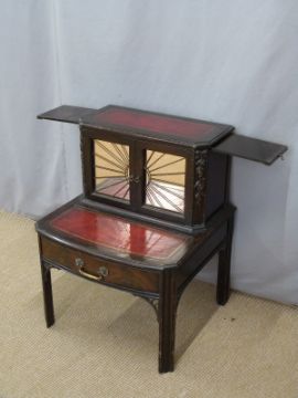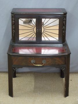 A 19th century low side cabinet with mirrored front, leather inset top and single drawer, W56 x D51 x H75cm
