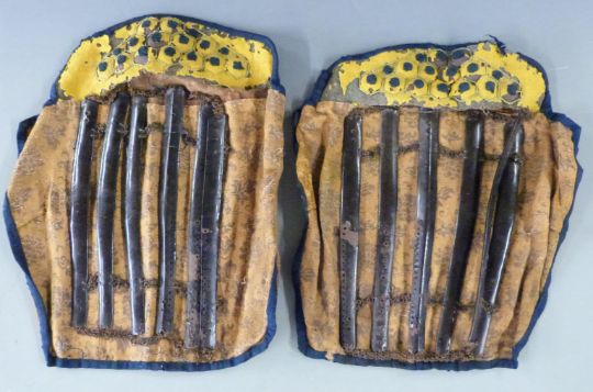 A pair Japanese Edo period Shino suneate (shin guards), L26cm