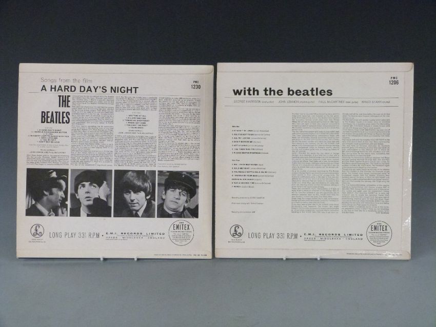 The Beatles- With The Beatles (PMC 1206) Dominion. Belinda credit, condition of record and sleeve appears Ex less one mark across track 1 side 1. Also A Hard Days Night (PMC 1230) condition appears Ex less one mark across track 1 side 2