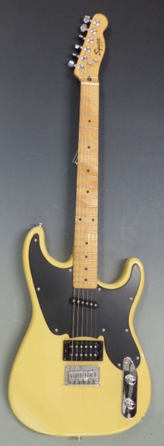 Fender Squier, electric lead / rhythm guitar in blonde lacquered finish with black scratch plate, serial no IC060721594, with hard case in unused condition