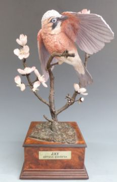 Albany Fine China, Worcester bronze and porcelain figure of a Jay raised on a marble base, H 37cm